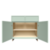 - Most of our customers resolve this by purchasing additional decorative doors to cover up all exposed sides of the cabinets.